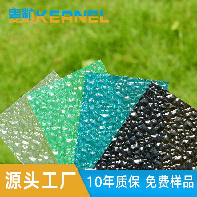 PC顆粒板是在通用型耐力板制造技術的基礎上,改變部份模具及工藝,使產品的表面形態發生物理變化,從而由板材表面結構變化而促成光學性能和視覺、感覺的變化。具有輕質高強、抗沖擊性好、耐候和擋紫外線、透光率高、易加工和安裝、難燃性等特點,